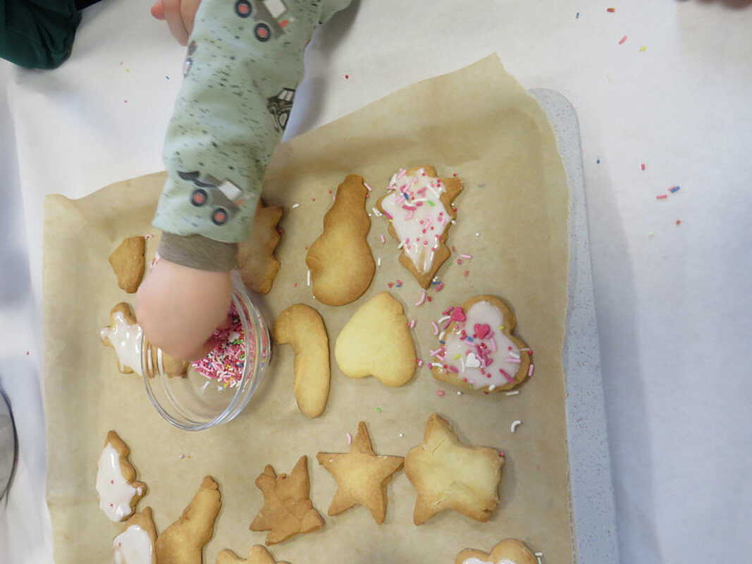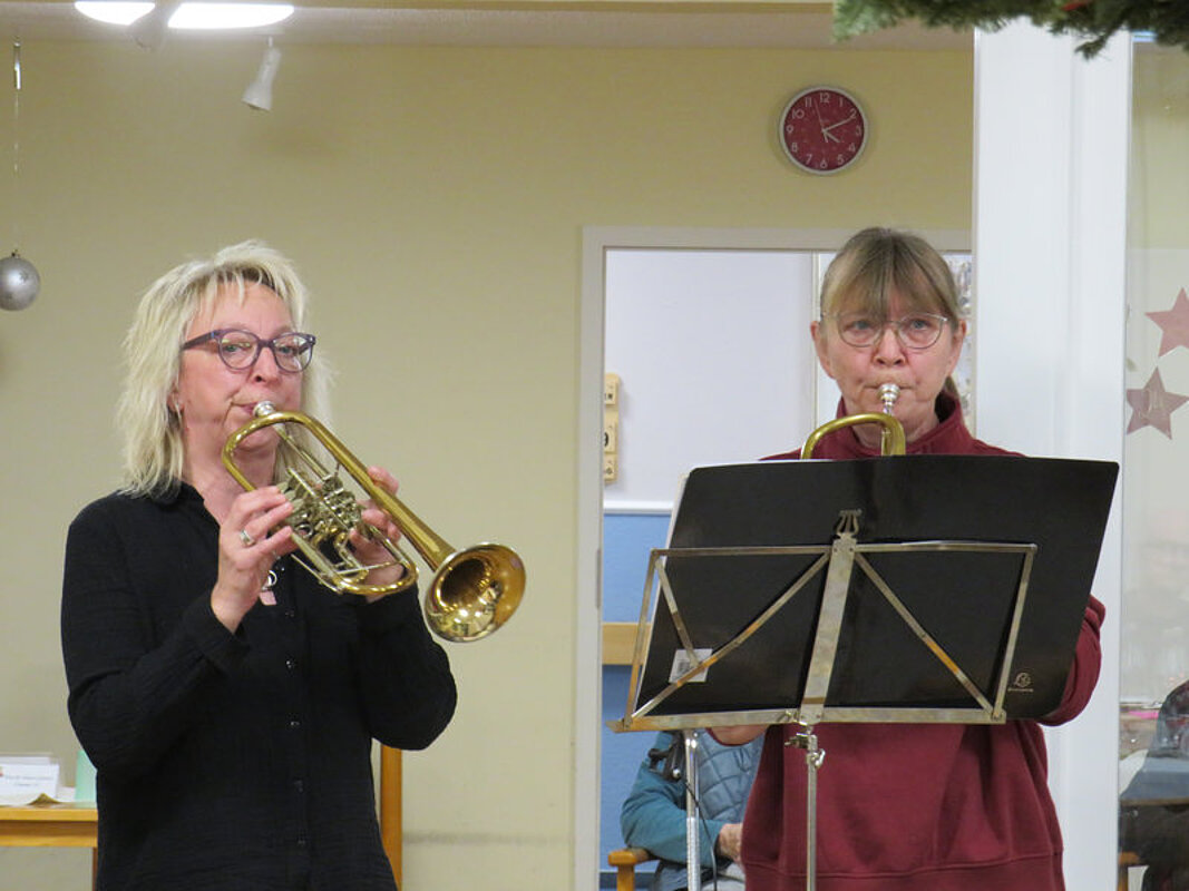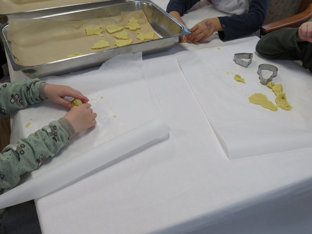 Am Vormittag hatten wir Besuch vom Kindergarten Storchennest, um gemeinsam Plätzchen auszustechen. Der Nachmittag wurde unseren Bewohnerinnen und Bewohnern von einem Trompeten-Duett versüßt, welches für unsere Bewohnerinnen und Bewohner Weihnachtslieder spielte. 2 Tage später kamen die Kinder vom Kindergarten zum dekorieren der selbstgebackenen Plätzchen vorbei.